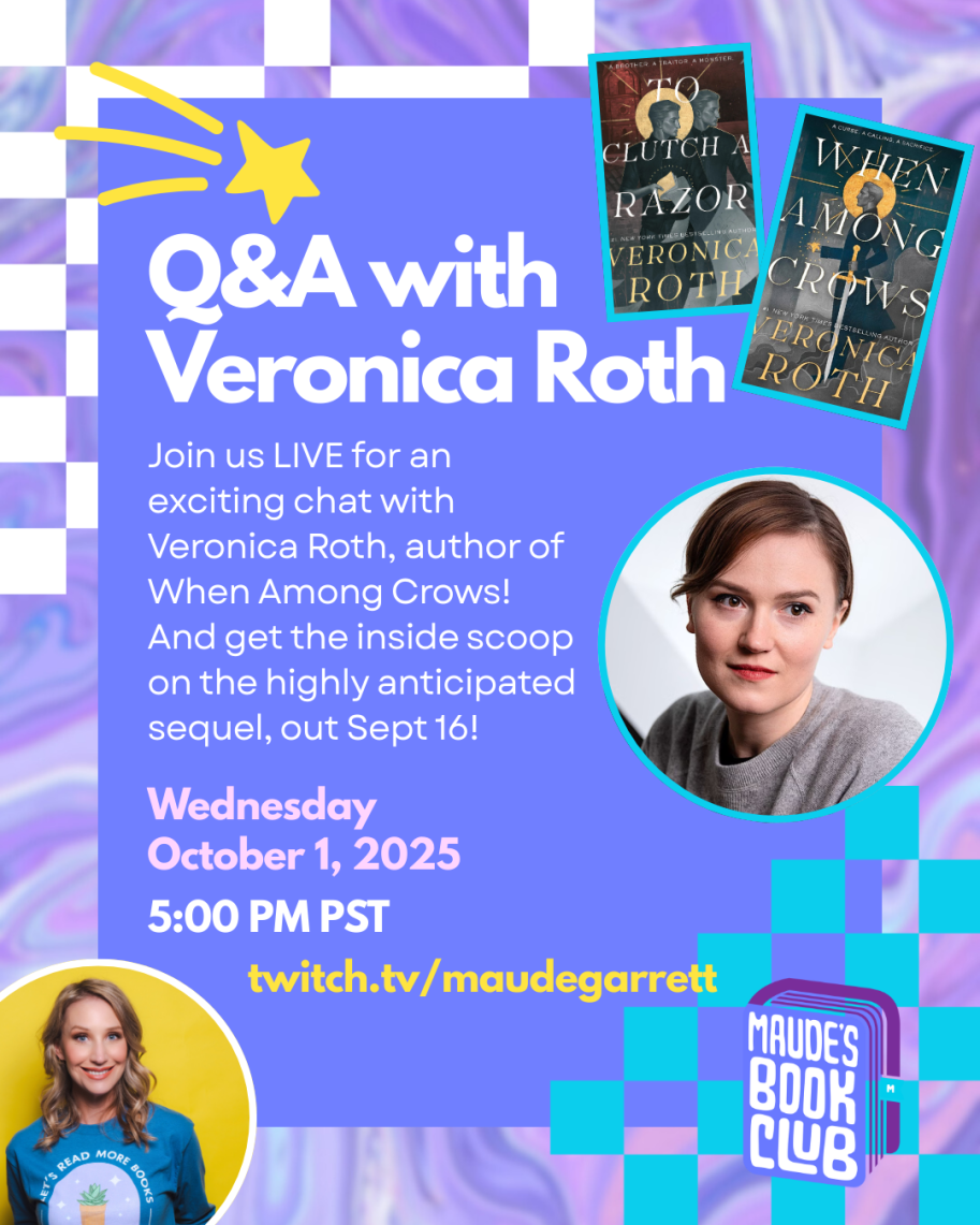 Fortunately for us, Maude Garrett will interview Veronica Roth on October 1st about her duology When Among Crows and To Clutch a Razor. If you’re new to Maude’s Book Club, come and join our Discord and follow us on Twitch for more interviews with incredible authors!