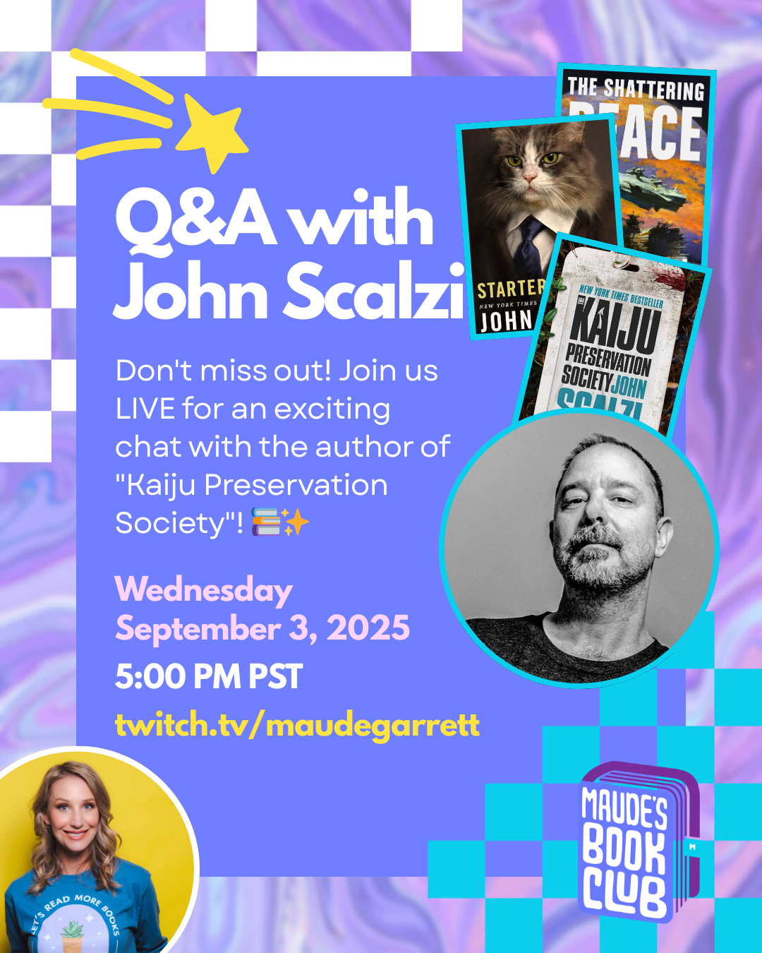 Maude Garrett will interview John Scalzi on Wednesday, September 3rd!